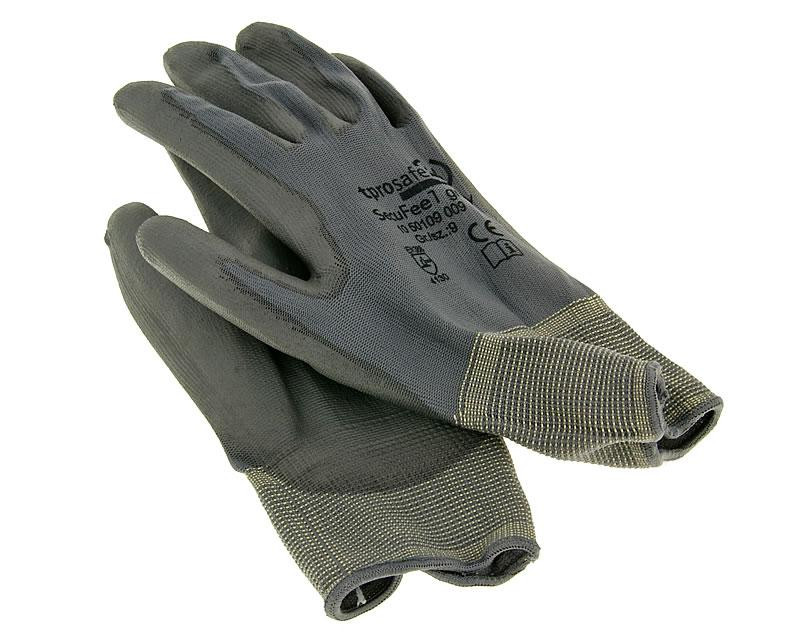 Universele werkplaatshandschoenen, naadloze van nylon met PU gecoate palm tot over de vingertoppen.